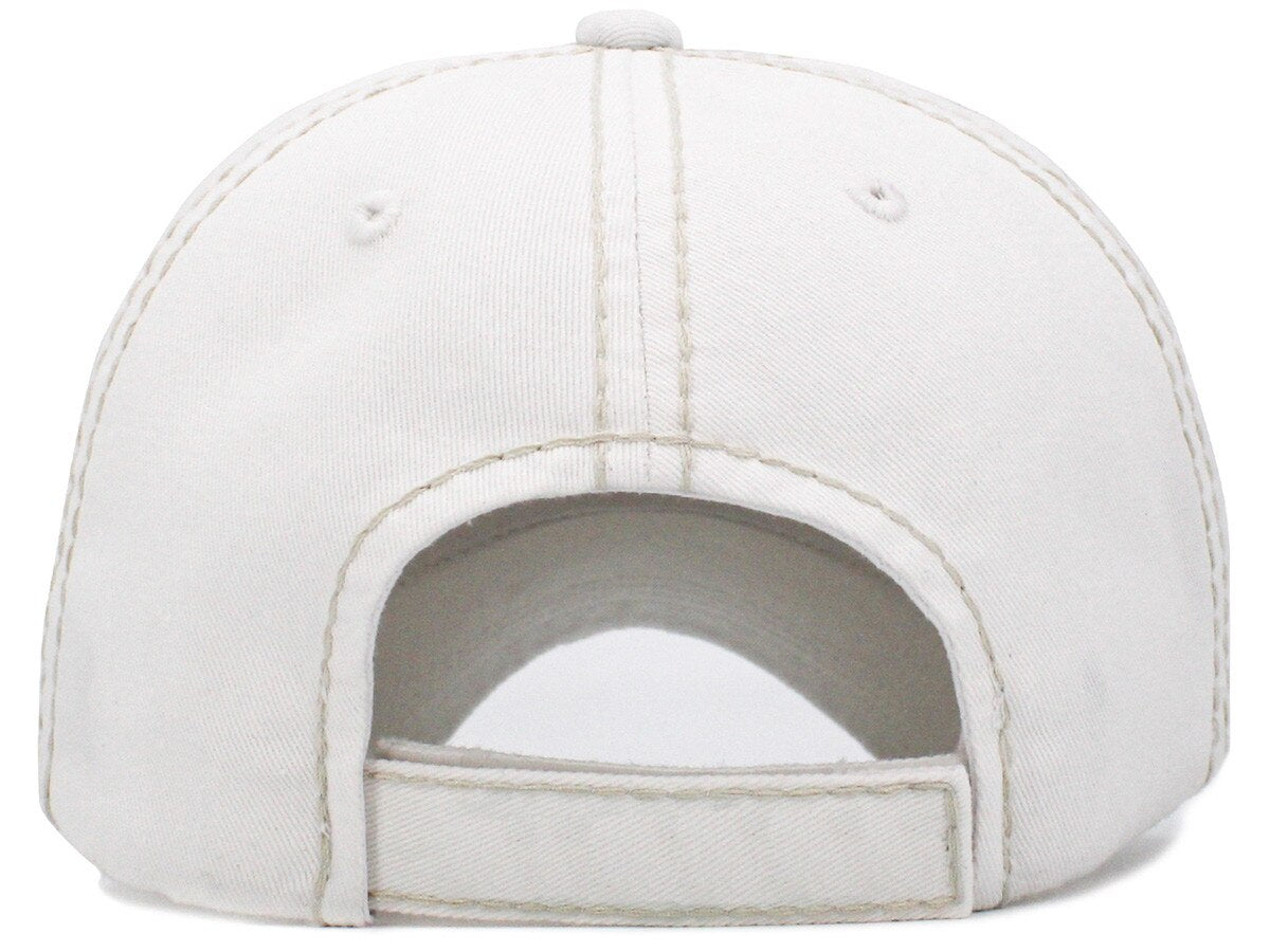 Vintage washed distressed and adjustable velcro back baseball hat.